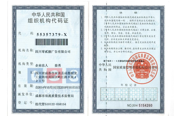 企業(yè)組織機(jī)構(gòu)代碼證: