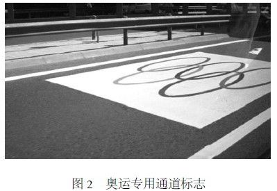 在北京奧運(yùn)會(huì)期間,在路面上張貼的奧運(yùn)專用通道標(biāo)志的五環(huán)不是常見的正圓形,而是長橢圓形,對(duì)標(biāo)志的變形正是考慮到了行車者的高速運(yùn)動(dòng)視線而特殊設(shè)計(jì)的,見圖2 。