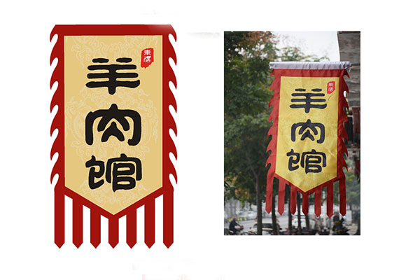 裝修公司在這幾外挑式招牌時(shí),招牌距餐廳建筑表面有一定距離,這樣突出醒目,易于識(shí)別。例如各種立體造型招牌、雨篷、燈箱、旗幟等。例如某經(jīng)營(yíng)湘菜的餐廳,在門面上方設(shè)計(jì)了一個(gè)具有傳統(tǒng)中式風(fēng)味的挑檐,上書“湘菜館”三個(gè)大字,檐下兩邊墜有大紅燈籠,格外引人注目。