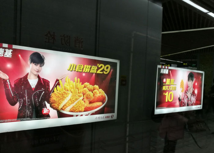 (1)內(nèi)容趨向以商業(yè)性為主,兼顧公益性和地方特色 地鐵廣告內(nèi)容以商業(yè)為主,時效性較強,在企業(yè)推出新產(chǎn)品或季節(jié)更替、突發(fā)重大事件時,企業(yè)就會更換廣告主題和表現(xiàn)手法,且時換時新。地鐵是公共產(chǎn)所,必須肩負受眾的信息需求,擔負起一定的社會責任,因而公益廣告的公益信息內(nèi)容發(fā)布也是地鐵廣告的重要組成部分。在某種程度上,地鐵廣告還結(jié)合公益性和商業(yè)性表現(xiàn)出隱形廣告的特點。