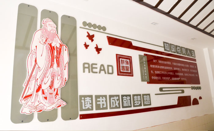 校園文化墻內(nèi)容設(shè)計應(yīng)該有讓師生有身在其中,感在其中,悟在其中,長在其中的感受,這樣校園文化墻布置才能達成美育、德育的目的,才能真正深入人心,事半功倍。