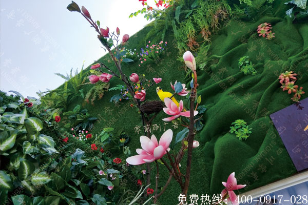 7、安裝完圍墻柵欄仿真模擬假草坪后,可以在上面釘上宣傳詞個性字體或者圖案等。
