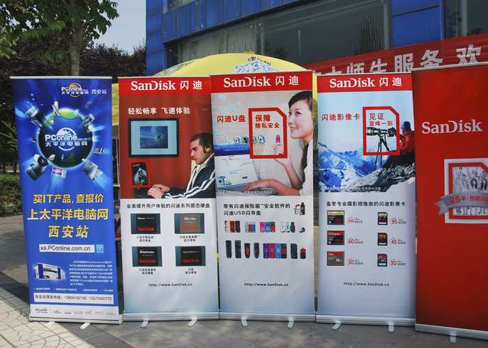 易拉寶也稱之為海報(bào)架和展示架。在廣告業(yè)中,他們也稱之為易拉架,易拉卷,易拉卷等。她們是宣傳海報(bào)圖片。它常常在有很多人的街道社區(qū)安全通道中應(yīng)用,以幫助自雇電影路演市場(chǎng)銷售主題活動(dòng)或臨時(shí)性展臺(tái)。易拉寶的關(guān)鍵原材料是塑膠或鋁合金型材。歸納條幅的取代方式是街道社區(qū)條幅,路牌,宣傳海報(bào),紙貼等。