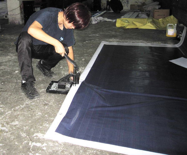 2011年9月19日,我公司生產(chǎn)部噴繪車間新購(gòu)進(jìn)打扣機(jī)一臺(tái)。據(jù)生產(chǎn)部主管王大學(xué)介紹,該設(shè)備能夠?qū)崿F(xiàn)快速打扣。與原始的人工手工打扣方式相比,使用打扣機(jī)打扣能夠極大提升我們雙流噴繪畫面打扣效率,減少員工工作量,并且打扣質(zhì)量還能夠得到大幅提升。