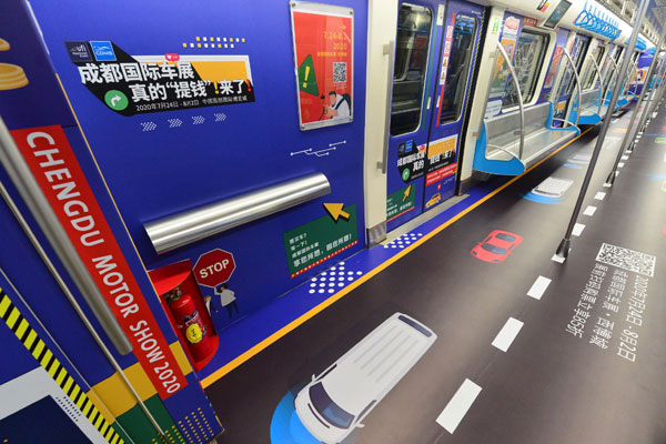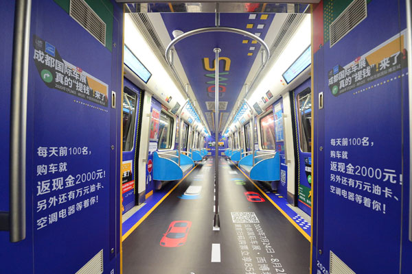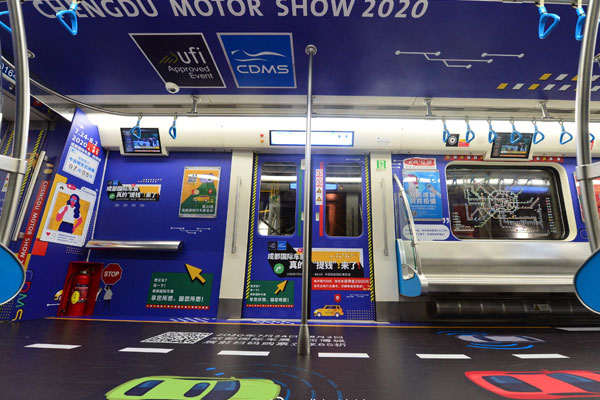 近日“成都國(guó)際車(chē)展號(hào)”地鐵專(zhuān)列上線,變身1號(hào)線主題車(chē)廂亮相,帶有CDMS“標(biāo)志藍(lán)”一路穿梭,整個(gè)車(chē)廂以明快藍(lán)為色彩基因,碰撞色彩、互動(dòng)插畫(huà)的設(shè)計(jì)表達(dá),營(yíng)造出年輕潮流、時(shí)尚活力的風(fēng)格,環(huán)繞式超時(shí)空的體驗(yàn)空間,吸引了眾多市民“拍照打卡”呢!