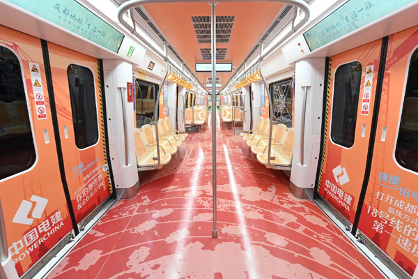 由成都中電建瑞川軌道交通有限公司和成都軌道交通集團(tuán)聯(lián)合打造的“電建號(hào)”主題列車,“登陸”18號(hào)線?!半娊ㄌ?hào)”主題列車以“穿山越嶺,遇見未知風(fēng)景”為主題,展現(xiàn)中國(guó)電建在建設(shè)清潔能源、營(yíng)造綠色環(huán)境、服務(wù)智慧城市方面的突出成果。