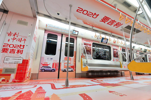 吉愿專列來了,你要的萬事大吉,我們鋪滿整個車廂。吉利打造的吉愿專列主題列車將"吉利中國年"傳遞至杭州和成都全城,在地鐵列車車廂內,6節(jié)車身上展現(xiàn)了從更多不同群體角度用多種不同的話語表達"要吉利"的愿望“意景”組成"2020要吉利"文化主題列車。