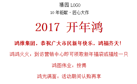 西苑在2016年取得了優(yōu)異的銷售業(yè)績,新年即將來臨,西苑應(yīng)該以自豪和自豪為2016畫上完美的句號,以嶄新的面貌迎接即將到來的2017年。元旦和春節(jié)是中國文化中最重要的傳統(tǒng)節(jié)日。在此期間,西苑作為黃山中心城區(qū)的標(biāo)桿房地產(chǎn)項目,要以優(yōu)秀的現(xiàn)場氛圍包裝,突出項目的品質(zhì)和服務(wù),以“家的本質(zhì)”為主導(dǎo)理念,滿足傳統(tǒng)市民,給他們強(qiáng)烈的歸屬感。
