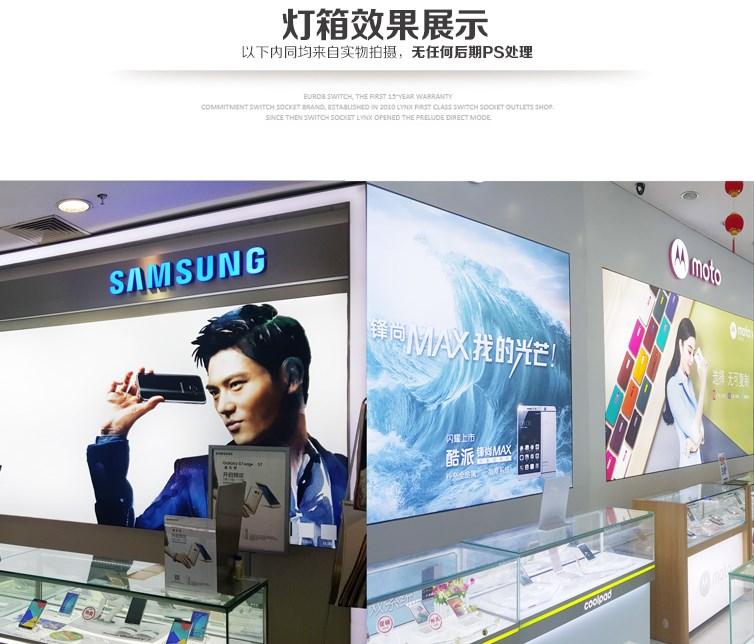 完成的圖片安裝在燈箱框架上。請(qǐng)注意,圖片的四邊是軟橡膠條。沿?zé)粝淇蚩ú壑瘘c(diǎn)插入,順時(shí)針安裝。這幅畫(huà)有一定的彈性。安裝對(duì)側(cè)后,可適當(dāng)張緊插入。不要把燈箱布再拉一點(diǎn),這樣會(huì)造成畫(huà)面變形。安裝順利后即可進(jìn)行。
