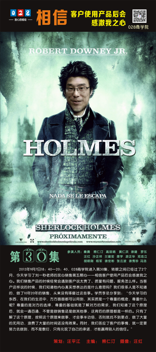 2013年9月7日18:40—20:40,成都廣告公司028商學(xué)院進(jìn)入第30集,轉(zhuǎn)眼之間已經(jīng)過了2個(gè)月,今天學(xué)習(xí)了劉一秒老師的攻心銷售第五顆心——相信客戶使用產(chǎn)品后會(huì)感激我之心。