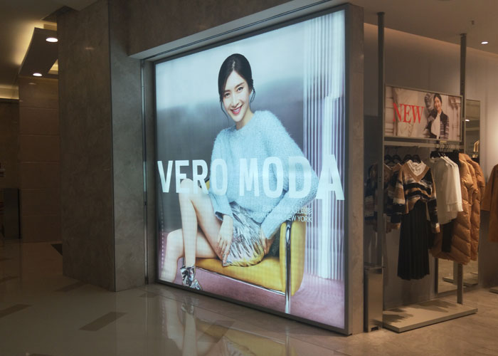 服裝店品牌形象燈箱-UV刀刮布噴繪廣告畫面制作安裝