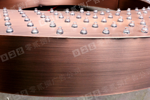 3、制作工序,嚴(yán)格按照生產(chǎn)工序制作,根據(jù)設(shè)計(jì)的制作單配好材質(zhì),使用的光源,制作的方法以及步驟!制作工期一般根據(jù)字的大小以及工程整體的大小來決定的,小的廣告字工期為1-3天,一般的工期為3-5天,大型的廣告字工期為10天左右。