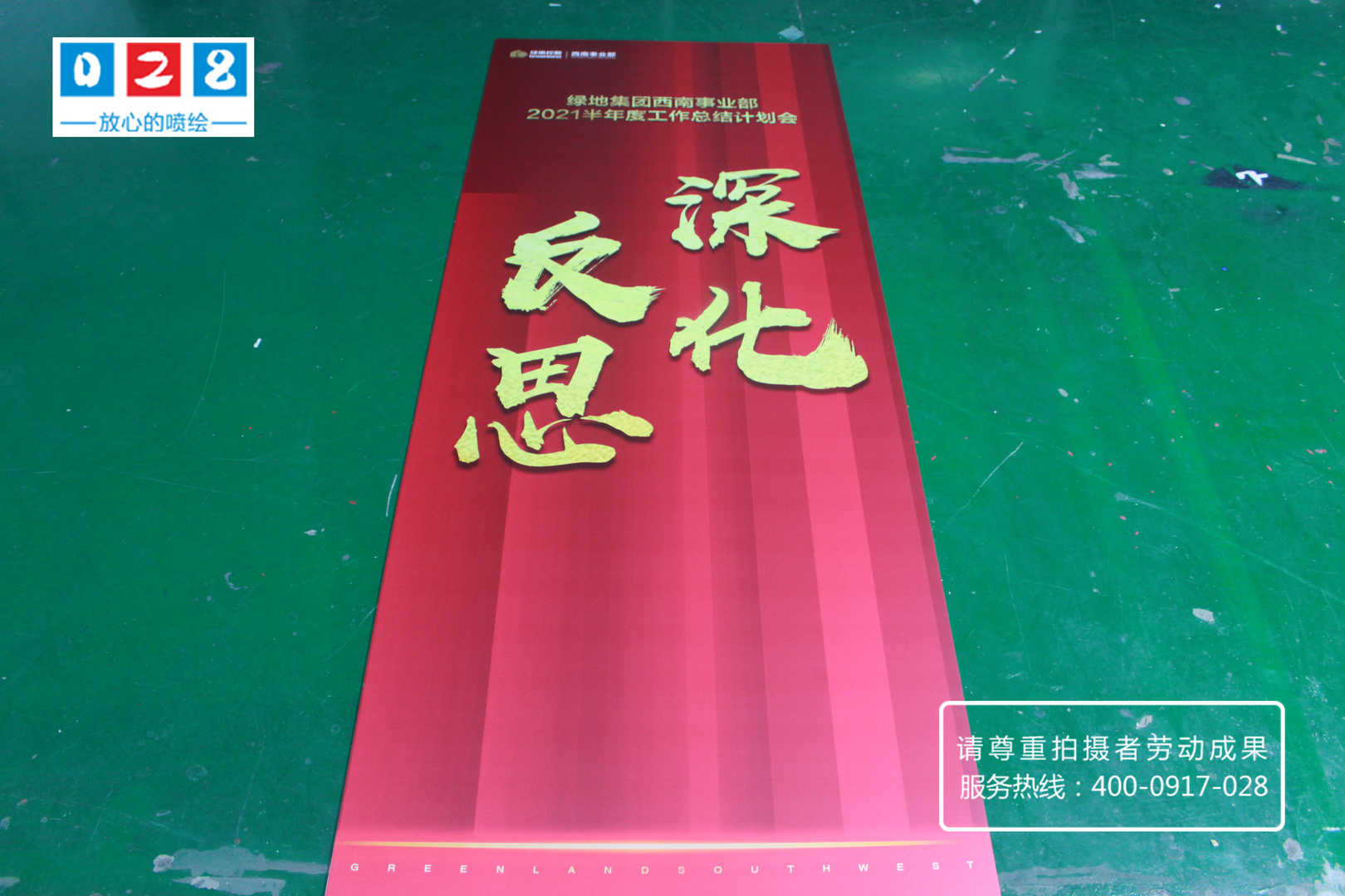 綠地集團西南事業(yè)部門2021年半年度工作總結(jié)計劃會流程說明牌制作,采用KT板裱背膠UV噴繪寫真