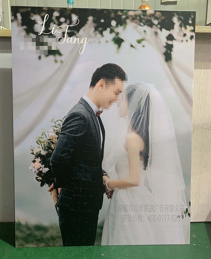 KT板經(jīng)過UV噴繪可以真實(shí)還原照片清晰度和色彩,圖片由028廣告公司采集,是婚禮使用的KT板宣傳制作,由圖可見還原度。