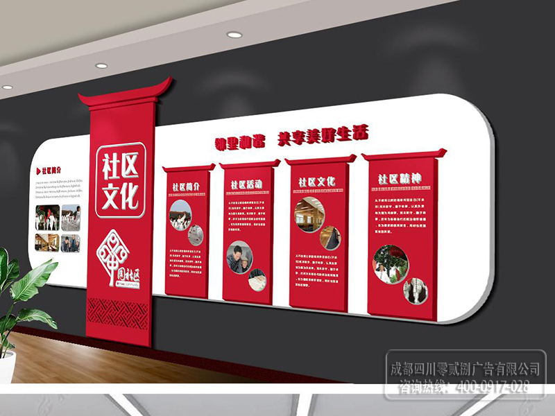 這一組圖片是社區(qū)文化墻的部分展示,每一片墻壁上都是不一樣的主題宣傳。成都廣告公司(028廣告)根據(jù)社區(qū)給出的要求,制作出貼合每個(gè)主題,欣欣向榮、朝氣、淳樸的社區(qū)文化墻,更貼近居民的日常生活。