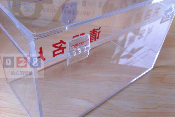 亞克力水晶箱是采用透明亞克力制作而成,將亞克力按尺寸進行雕刻后,用專用的亞克力粘結劑粘結在一起,注意在粘結時不要將箱體的表面弄上粘結劑從而影響產(chǎn)品的質(zhì)量和美觀。箱體的上面部分是可以打開的,是將亞克力熱彎制作成鏈接扣,將它們固定粘貼在一起。這樣看上去整體既美觀又不死板也更加的方便。箱子的整體制作好后可以根據(jù)客戶的需求采用不干膠刻字,粘貼在箱子的表面,最后制作成成品。