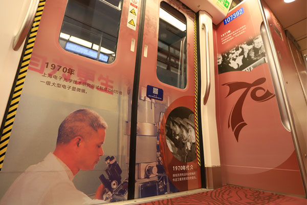 這趟主題列車(chē)由成都軌道交通集團(tuán)、四川省建川博物館等單位共同打造。主辦方精心收集、挑選了1949-2019年的300多張重要?dú)v史照片和文物復(fù)印件,通過(guò)時(shí)間長(zhǎng)廊的設(shè)計(jì),將新中國(guó)成立70年來(lái)的奮斗歷程和老百姓衣食住行的變化逐年呈現(xiàn)。為方便乘客更多地了解和分享新中國(guó)成立70年來(lái)的巨大變化,主題列車(chē)上設(shè)置了多處二維碼,掃碼即可進(jìn)入更多新聞專(zhuān)題,把“流動(dòng)博物館”延伸到“網(wǎng)絡(luò)博物館”。