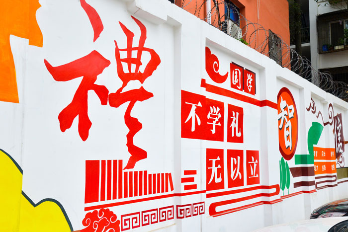 學(xué)校的每一面墻都在說(shuō)話,新校區(qū)藝術(shù)文化墻——譜曲繪彩、筑夢(mèng)元中