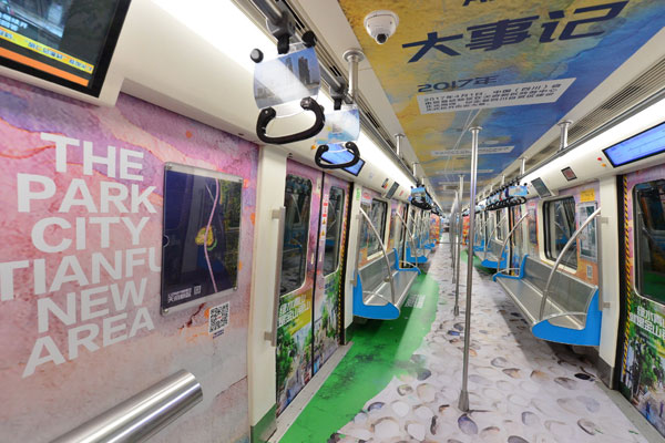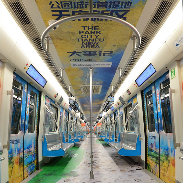 成都地鐵1號(hào)線公園號(hào)主題車車廂車貼制作安裝