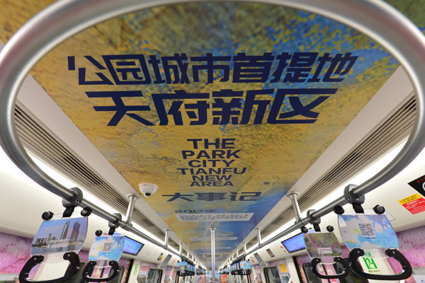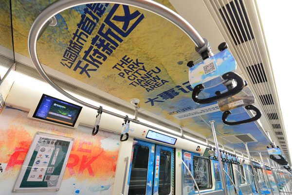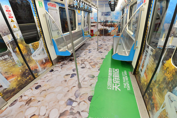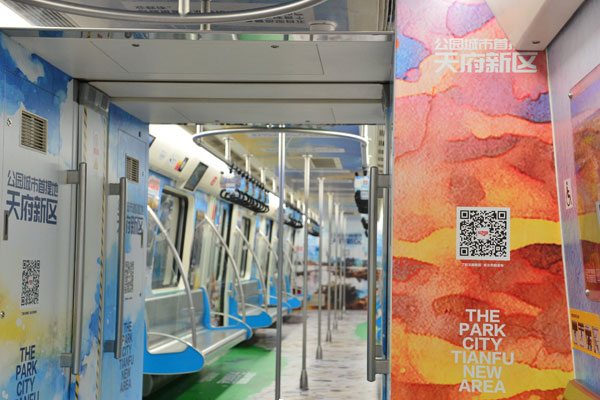 以“公園城市首提地——天府新區(qū)”為主題的“公園城市號(hào)”專列在地鐵1號(hào)線驚艷亮相。走進(jìn)車廂內(nèi),移步換景,石子路、綠蔭、山水、建筑…一座高顏值、生活味、國際范、有歸屬感的美麗宜居公園城市場景躍然眼前。興隆湖濕地公園、天府總部商務(wù)區(qū)、成都科學(xué)城、天府文創(chuàng)城……乘坐這列“天府新區(qū)·公園城市號(hào)”地鐵,帶你“游遍”天府新區(qū)!