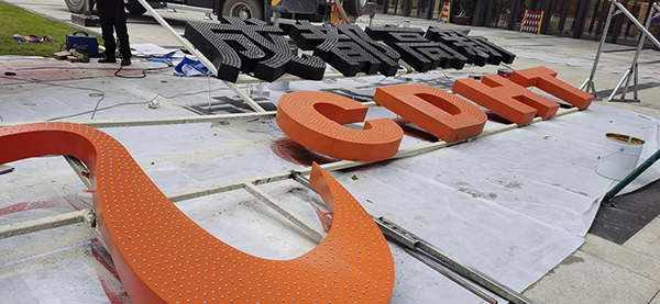 門頭招牌的制作材質(zhì)可以選擇我們?nèi)粘V谱鲿r(shí)所使用的材質(zhì)之一,沖孔發(fā)光字。沖孔發(fā)光字又叫做LED沖孔發(fā)光字,又可以稱作外漏燈珠發(fā)光字,它是一種我們常見(jiàn)的廣告門頭類的招牌字。在現(xiàn)代的商業(yè)、市政、醫(yī)療業(yè)等建筑物的門頭上都能夠看得到。它所使用的外殼材料是有鍍鋅金屬板材料或者是不銹鋼噴漆烤漆切割沖孔而制作成的,LED燈珠則使用的是點(diǎn)狀型類的燈珠,并且把燈珠露出字殼的表面,以此來(lái)突出呈現(xiàn)的效果。而燈孔之間的間距我們則一般會(huì)控制在二十毫米到五十毫米之間,但是標(biāo)準(zhǔn)間距是三十毫米。燈孔的間距大小一般是根據(jù)整個(gè)字體的大小來(lái)設(shè)定的。