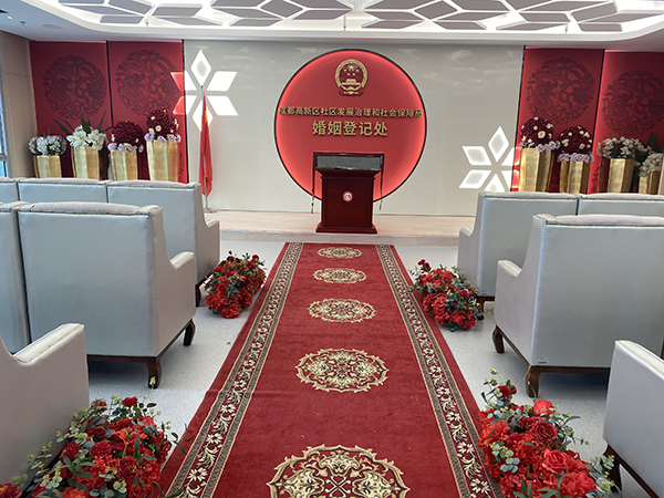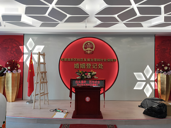 上圖是四川零貳捌廣告公司設計制作的高新政務中心的婚姻登記處的文化墻