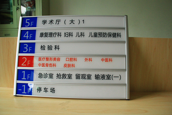隨著社會的不斷發(fā)展,人們生活水平的不斷提高,醫(yī)院作為一個比較特殊的服務(wù)機(jī)構(gòu),在當(dāng)下的一個不斷創(chuàng)新的社會環(huán)境中,群眾們對于醫(yī)院的一個整體環(huán)境也在不斷地提高需求。醫(yī)院這一機(jī)構(gòu)作為一所比較特殊的公共場所,它所組成的架構(gòu)是比較復(fù)雜的,醫(yī)院內(nèi)部構(gòu)造多種多樣,線路也是復(fù)雜多變。一般比較大型的醫(yī)院都是幾層樓起步,并且每層樓都有許多的科室以及病房等。所以,為了便于人們的生活而制作出來了一套較好的醫(yī)療標(biāo)識標(biāo)牌系統(tǒng)。