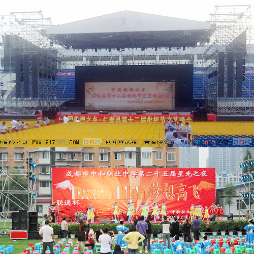 我們成都028廣告公司專業(yè)為您搭建舞臺(tái)、LED顯示屏租用、桁架搭建、燈光搭建租用、