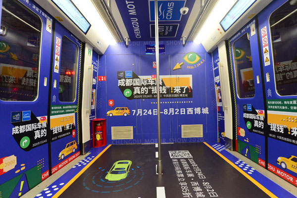 近日“成都國(guó)際車(chē)展號(hào)”地鐵專(zhuān)列上線,變身1號(hào)線主題車(chē)廂亮相,帶有CDMS“標(biāo)志藍(lán)”一路穿梭,整個(gè)車(chē)廂以明快藍(lán)為色彩基因,碰撞色彩、互動(dòng)插畫(huà)的設(shè)計(jì)表達(dá),營(yíng)造出年輕潮流、時(shí)尚活力的風(fēng)格,環(huán)繞式超時(shí)空的體驗(yàn)空間,吸引了眾多市民“拍照打卡”呢!