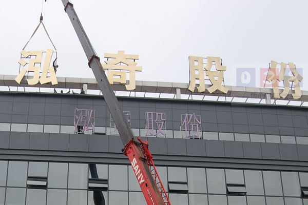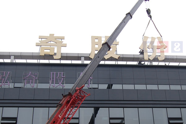 我們正在安裝黃鈦金字,我們制作的是黃鈦金外露發(fā)光字。